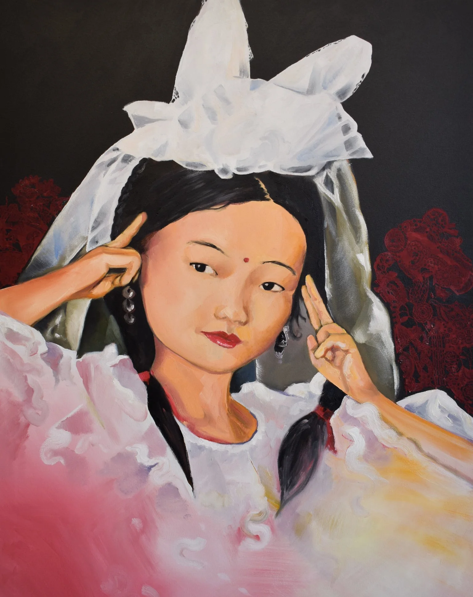 Portrait of my cousin from China 2 // 2023 // 60in X 48in // Oil and Oil Pastel on Canvas